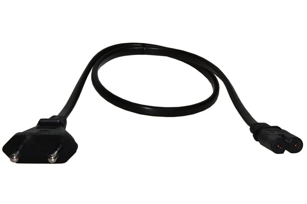 Europe to C7 power cord: CEE7/16 standard European 2 pin plug to IEC C7 with H03VVH2-F 0.75mm wire black power cord. 2 feet with all European country approvals including VDE.