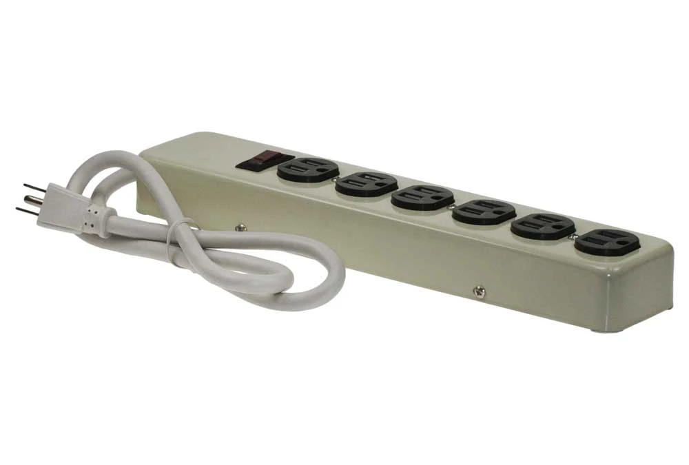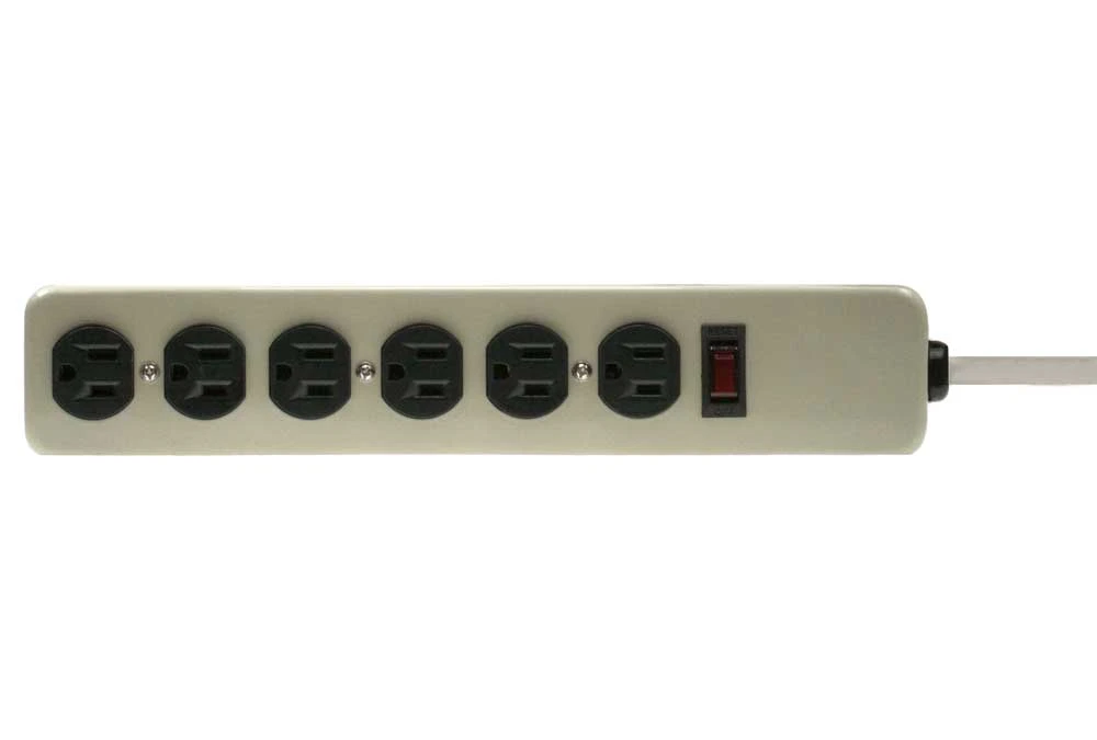 6 Outlet Power Strip Metal Case 3ft 14AWG/3 power cord 110V 15A 1875W 15A circut breaker. No surge protection. High impact metal housing