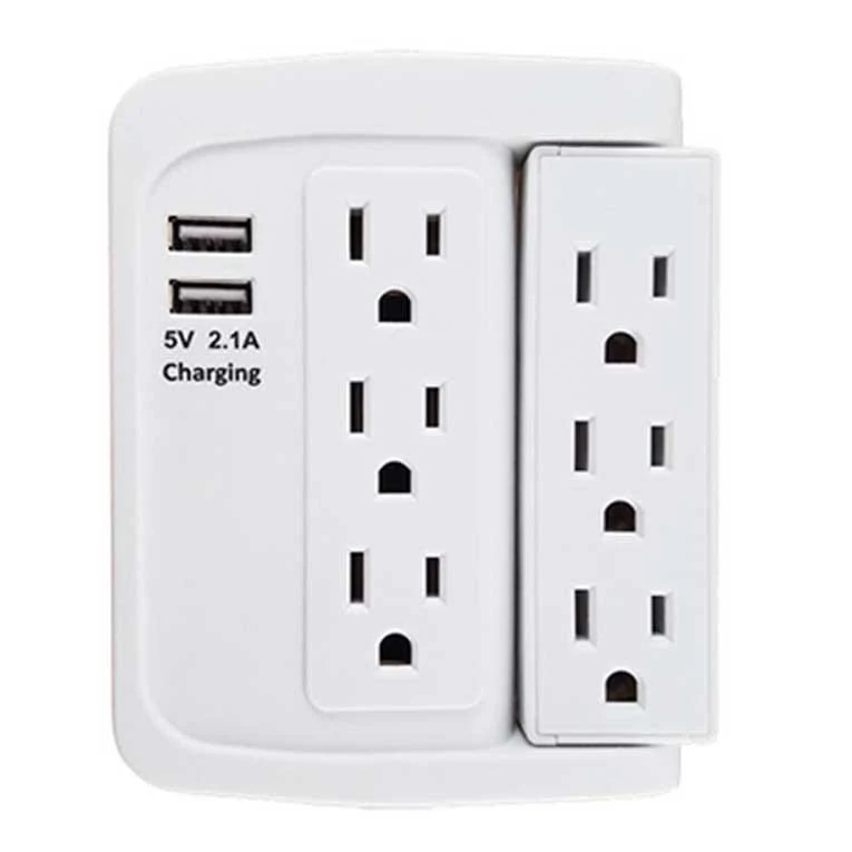 This 6 Outlet wall tap adapter has a convenient 90 Degree swivel on 3 of the 6 ports that allows you plug in devices