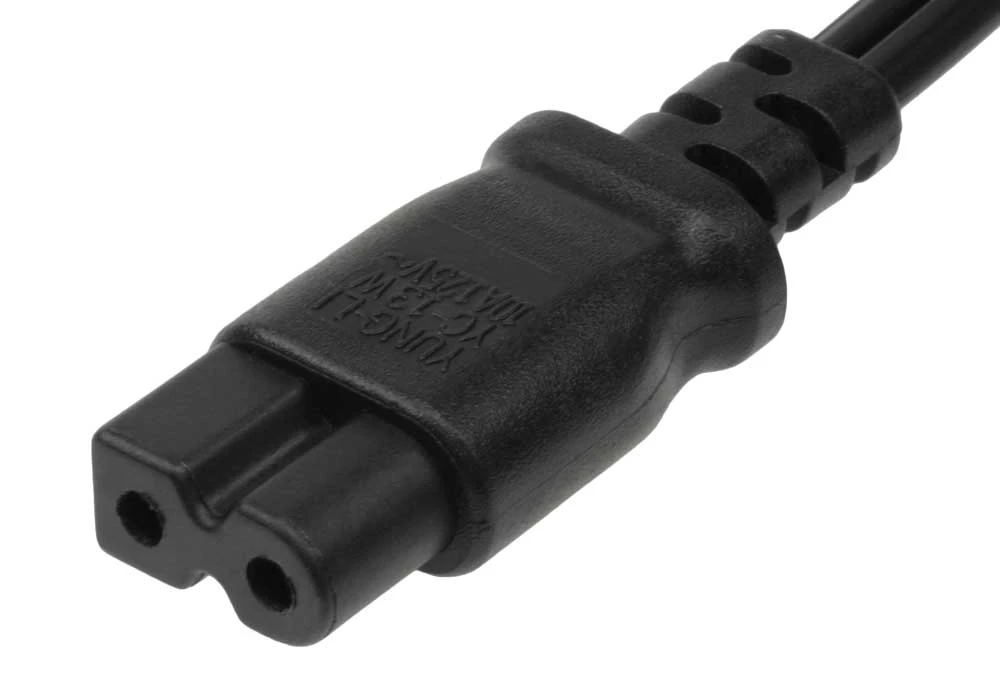 - Connectors: NEMA 5-15P 2-pin Male Right Angle to IEC 320- C7 Polarized