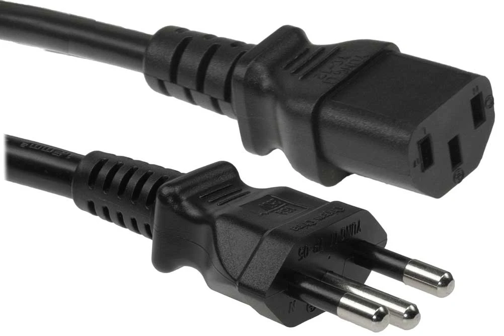 Brazil industrial to C13 power cord: NBR14136 (aka IEC 60906-1) Brazil industrial 3P plug to IEC C13 with H05VV-F black wire, 6 feet. Rated up to 16A 250V and Brazilian INMETRO certified.