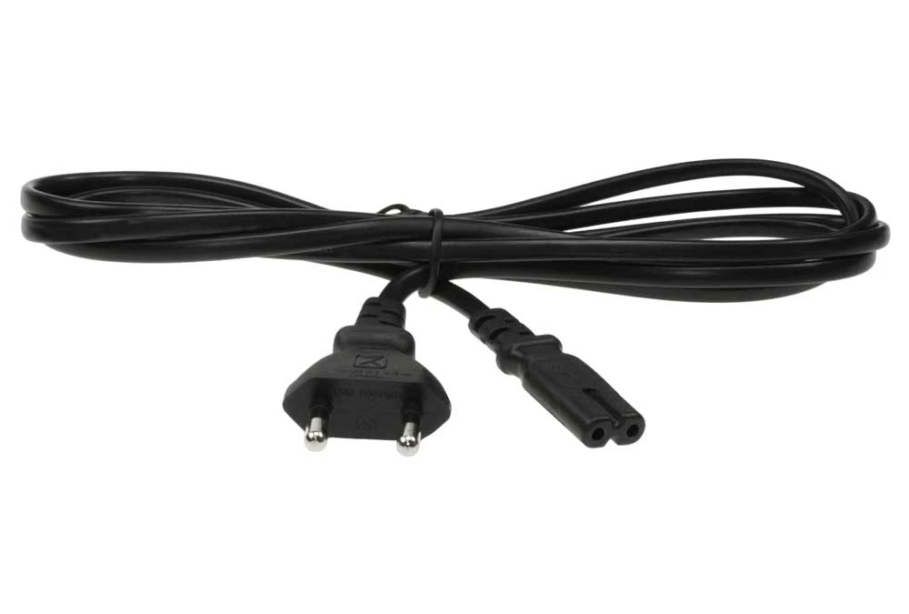 Korea to C7 power cord: KSC 8305 standard Korea 2 pin plug to IEC C7 with H03VVH2-F 0.75mm wire black power cord, 6 feet with Korea KTL approval.
