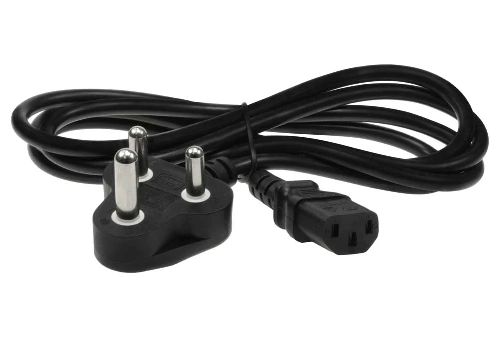 South Africa Industrial to C13 power cord: BS546 larger industrial South Africa 3 pin plug to IEC C13 with H05VV-F 0.75mm black wire, 6 feet with SABS approvals.