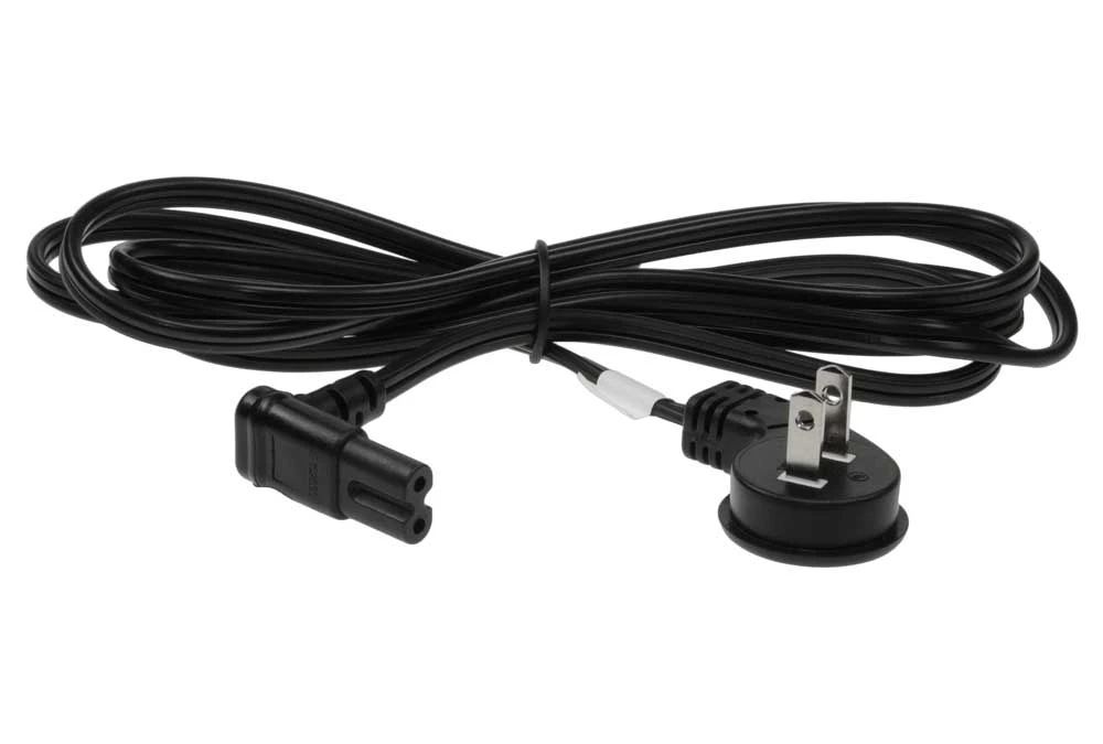 NEMA 1-15P ultra low profile angle plug to down angle IEC C7 power cord: NEMA 1-15P USA low profile angled 2 prong plug to IEC‚ C7 with 18/2 SPT-2 wire, 6 foot power cord with cUL approval.