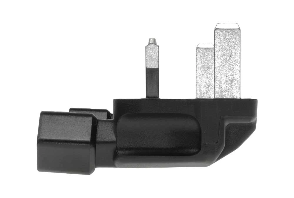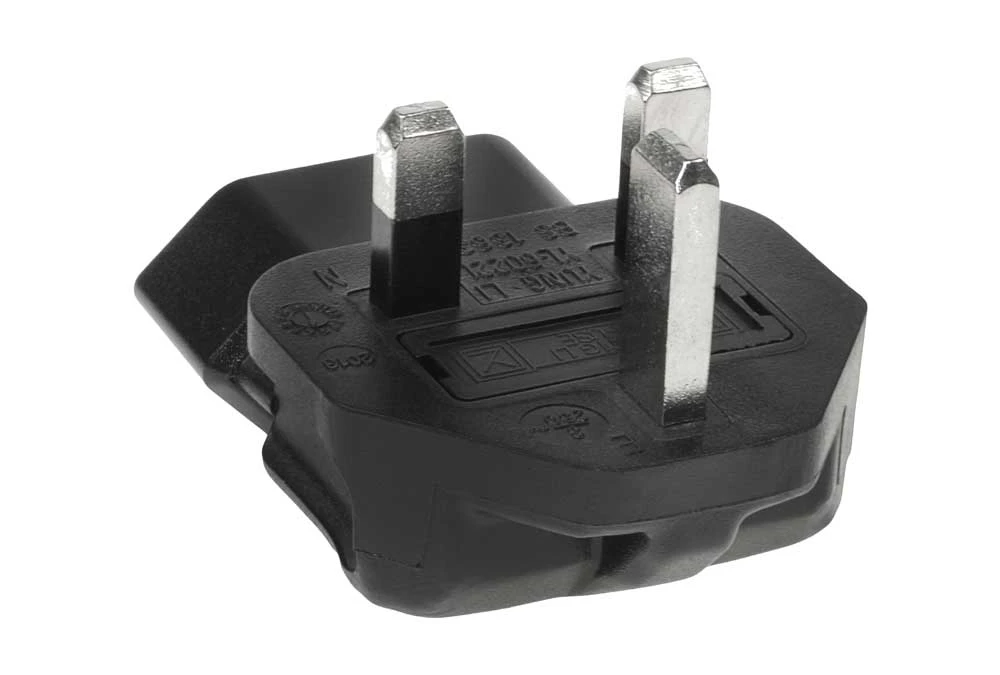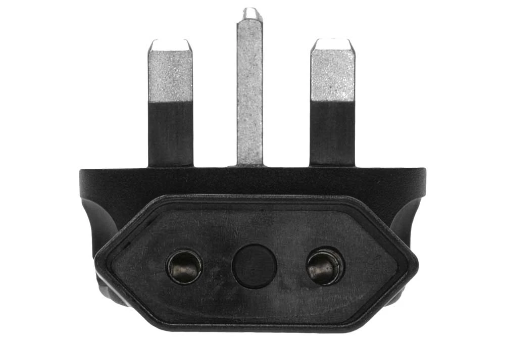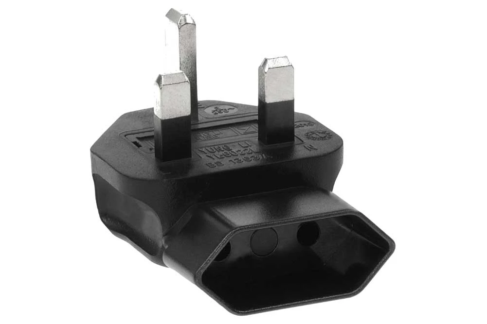 - UK BS1363 fused plug to Europe CEE7/16 receptacle right angle plug adapter