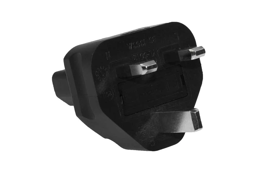 - 3 Prong Plug Adaptor. IEC 60320-C13 3 prong receptacle to British BS1363 3 prong plug.
