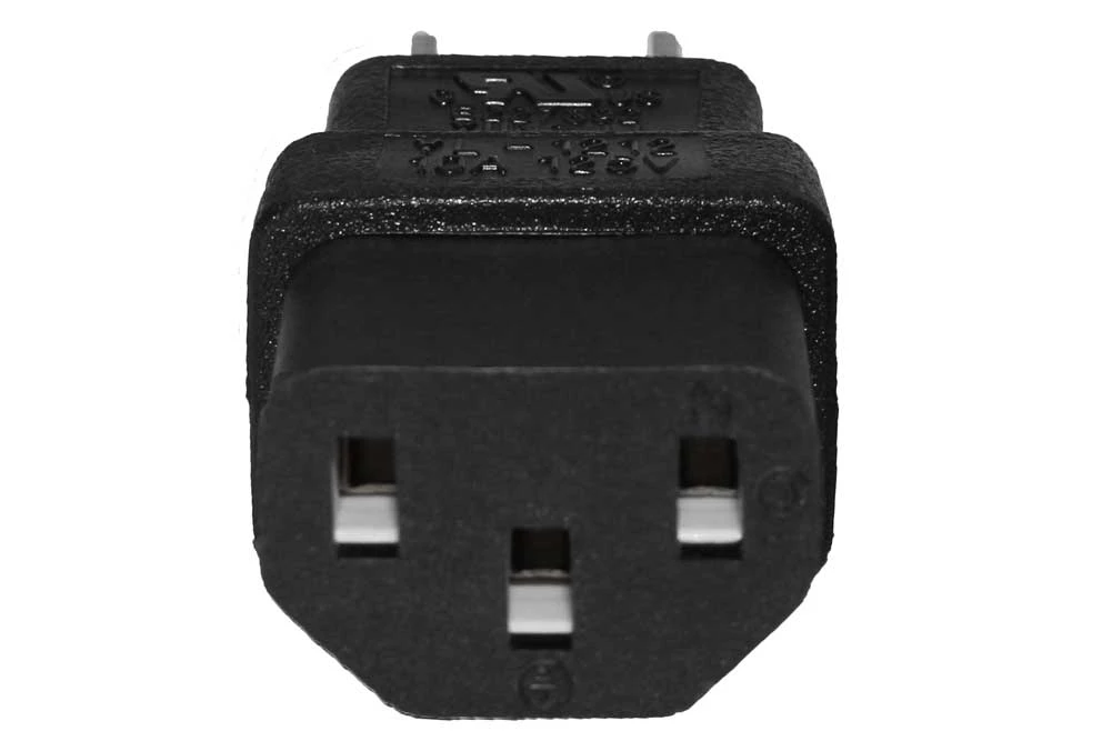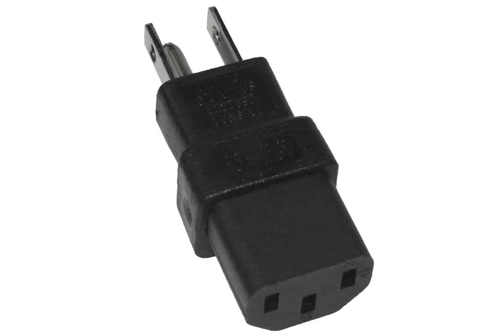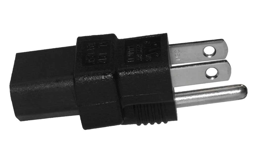 USA to C13 Plug Adapter:  USA NEMA 5-15P plug to IEC C13 receptacle plug adapter with UL approval.  Rated up to 10A 125V.  Rugged molded construction with RoHS and REACH compliance.Â