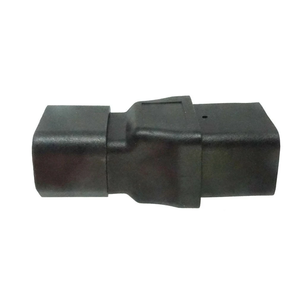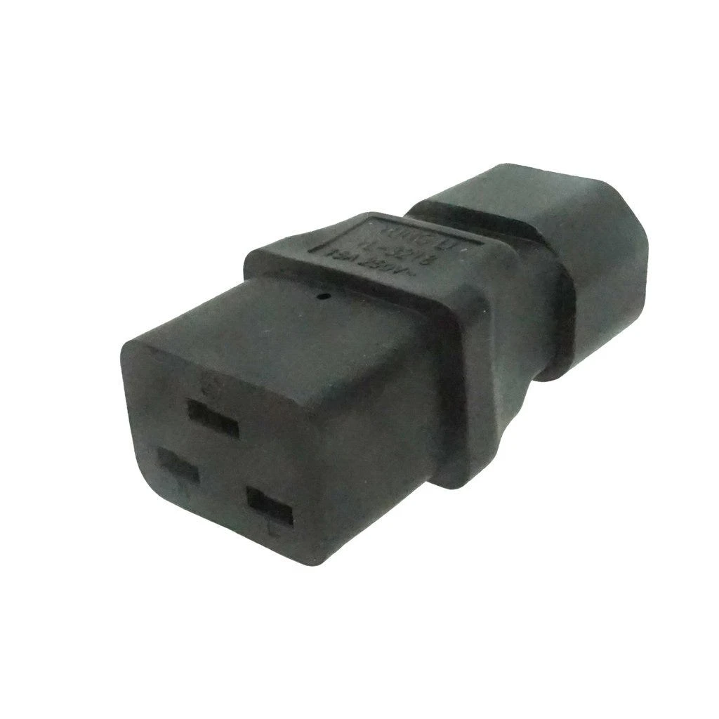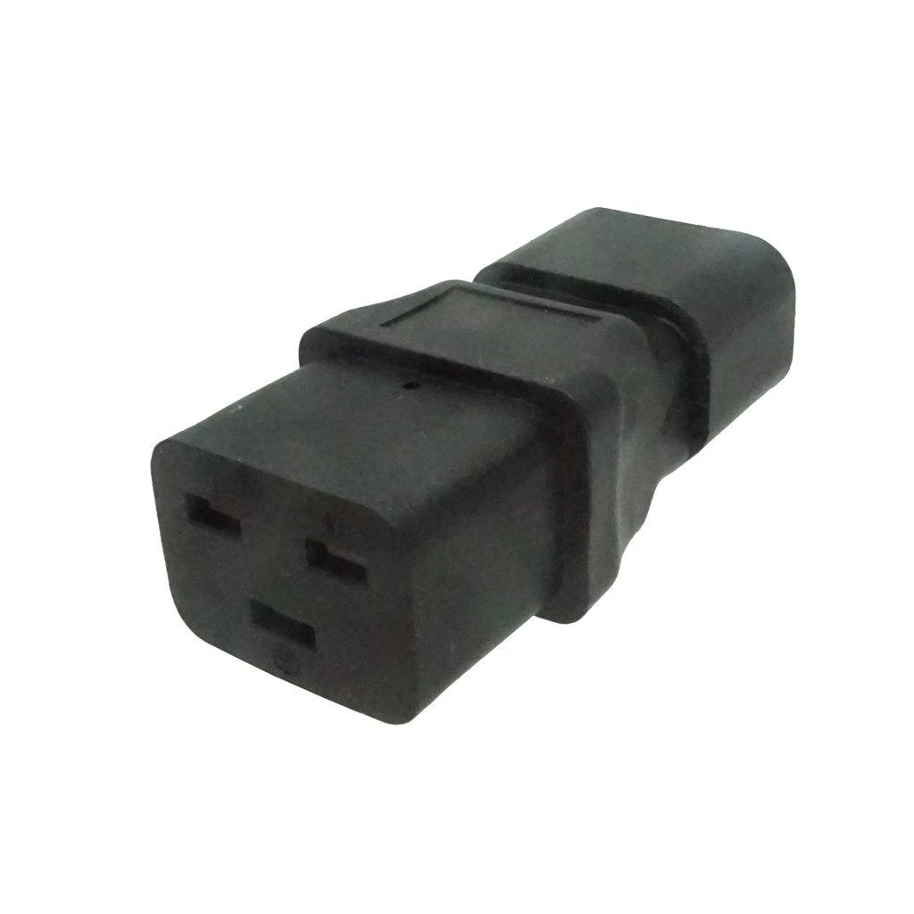 C19 to C14 Plug Adapter: IEC C19 receptacle to IEC C14 plug gender changer or plug adapter. Rated up to 15A 250V. Rugged molded construction.