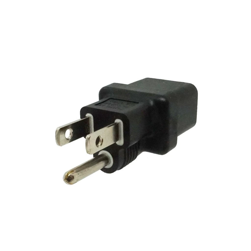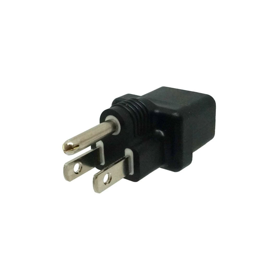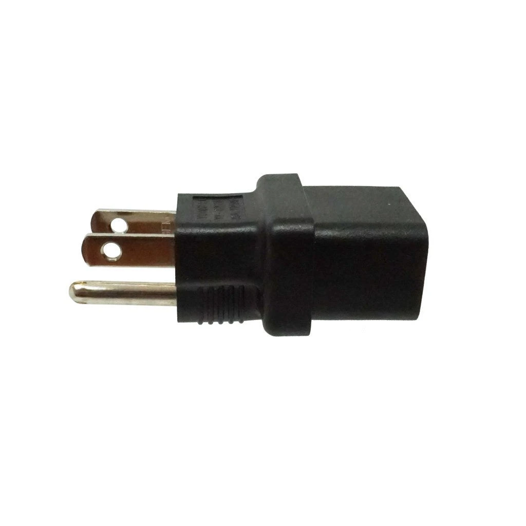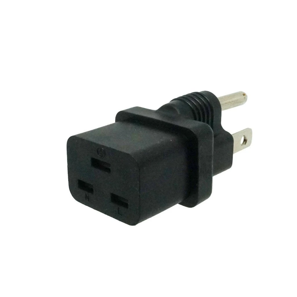 C19 to USA Plug Adapter: IEC C19 receptacle to USA NEMA 5-15P plug adapter. Rated up to 15A 125V.