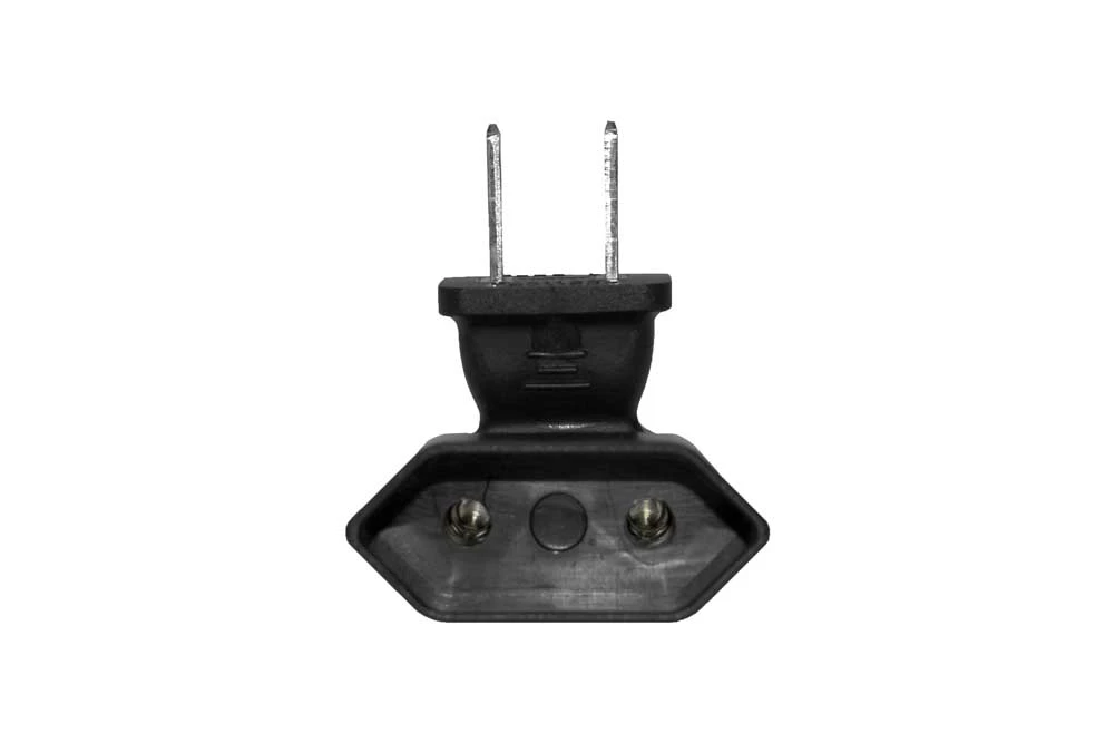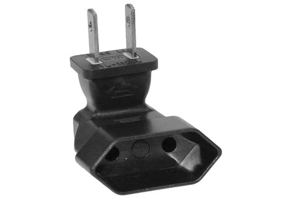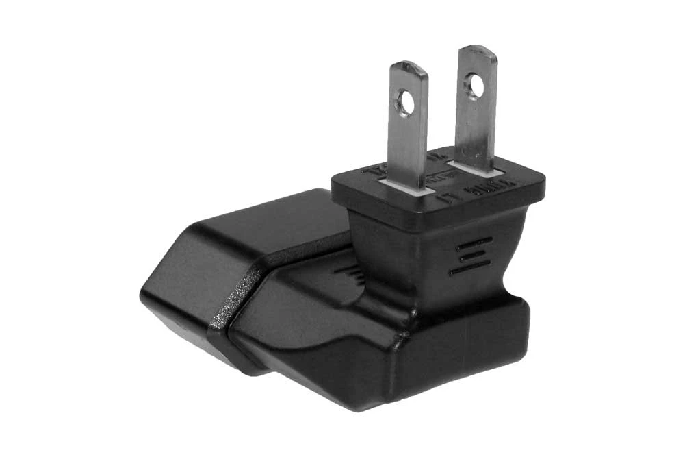 Converts 2P Euro cord to USA inlets. Rated up to 3A 125V. cUL approved.