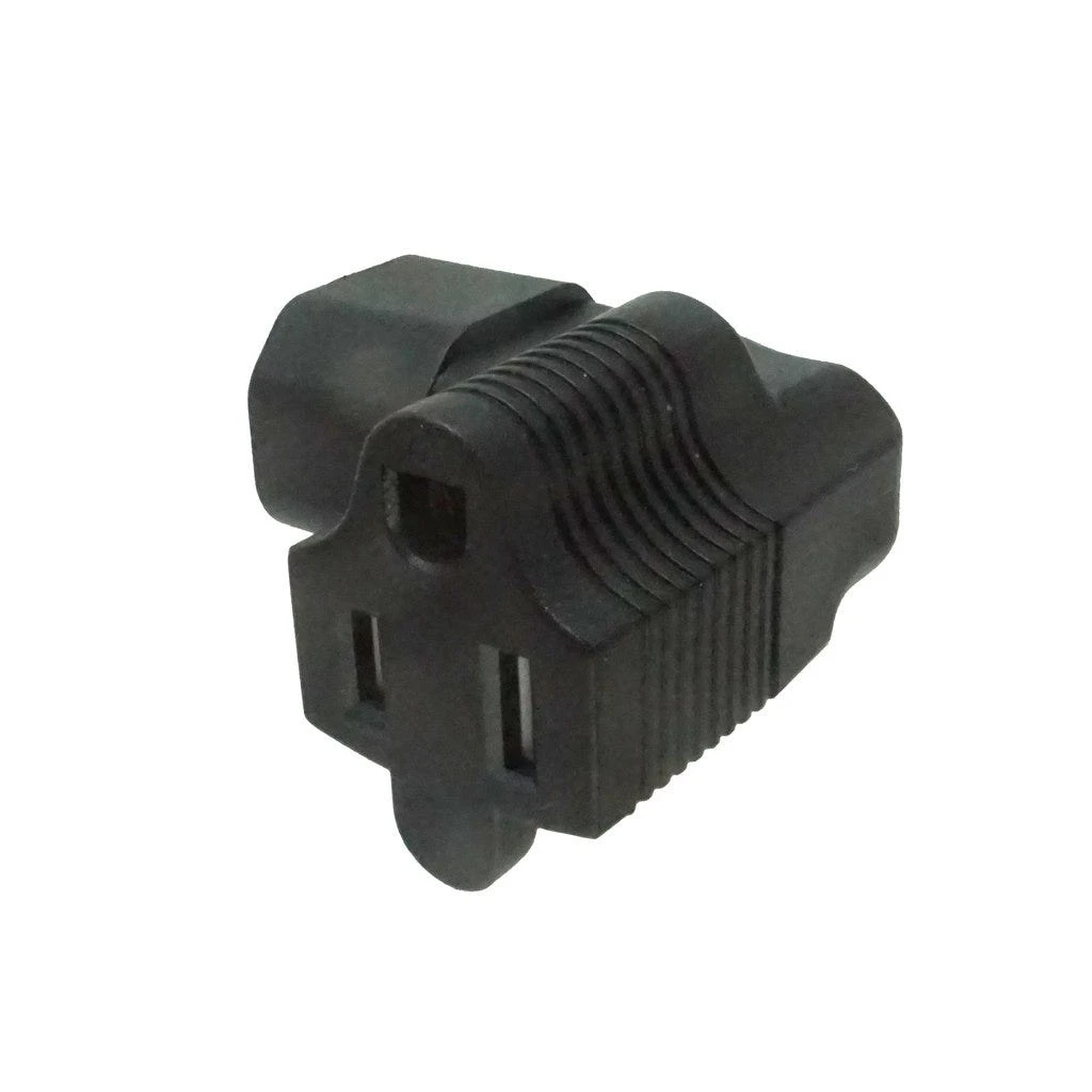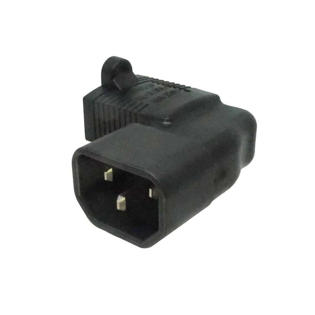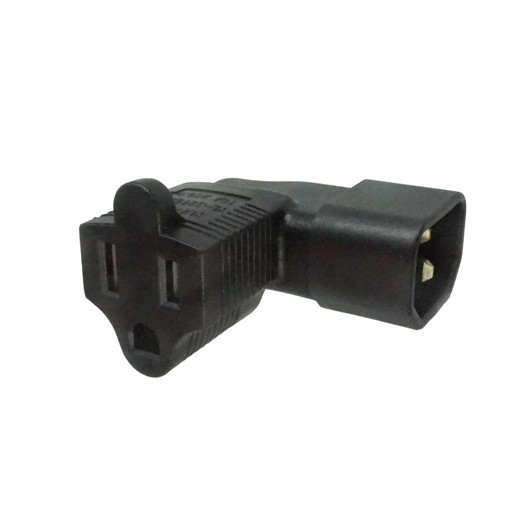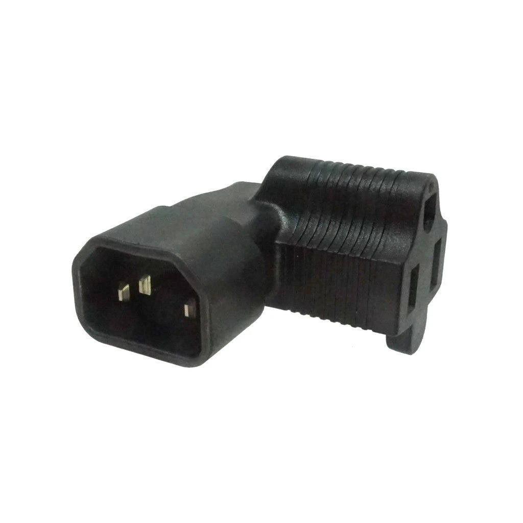 Left Angled USA Inlet to C14 Plug Adapter: Left Angled USA NEMA 5-15R receptacle to IEC C14 plug adapter. Rated up to 15A 125V.