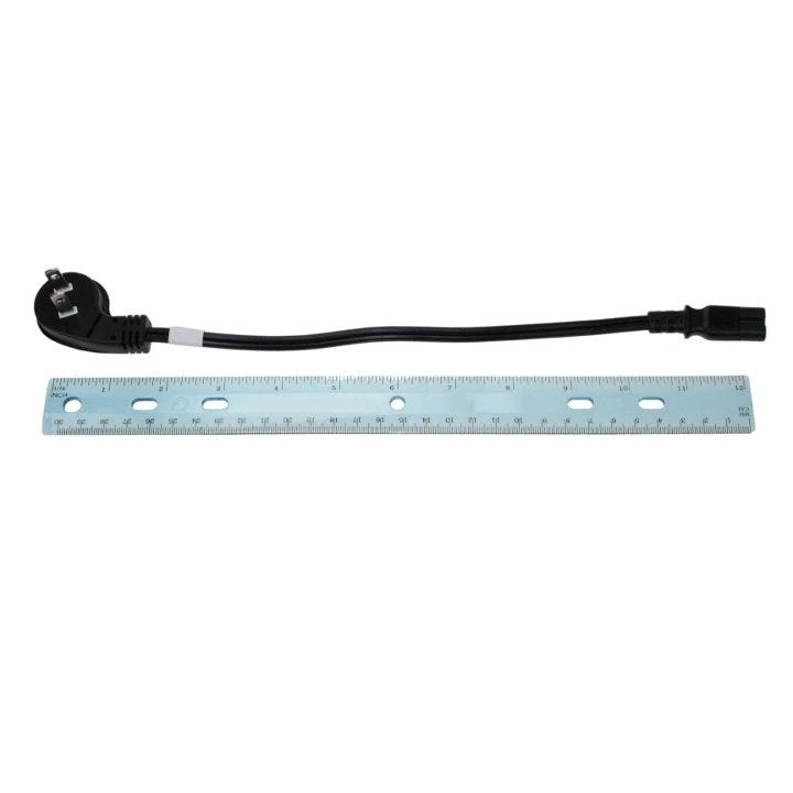Angled USA to C7 power cord: NEMA 1-15P USA low profile 45 degree angle 2 prong plug to IEC C7 with 18/2 SPT-2 wire, 1 foot power cord with cUL approval.