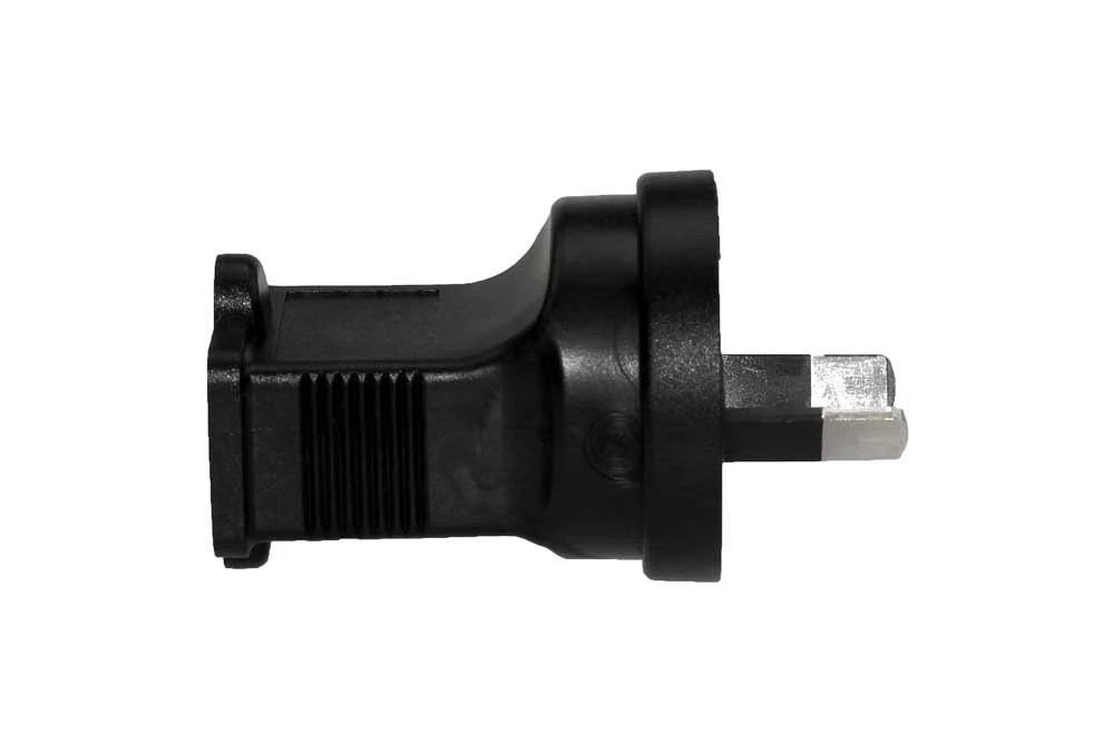 - 2 Prong Plug Adapter. USA NEMA 1-15R receptacle to Australia AS3112 2 prong plug.