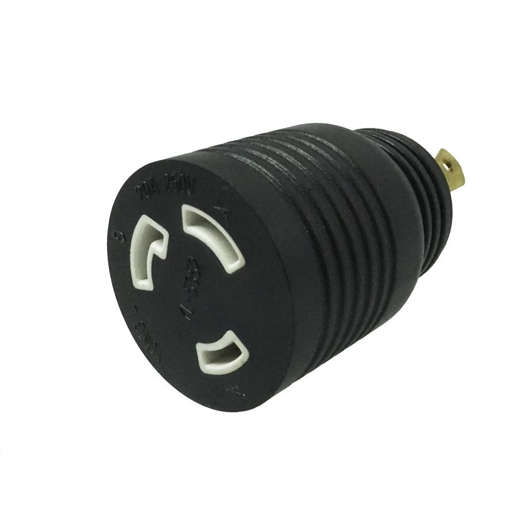 L6-30R to L6-20PÂ Plug Adapter: NEMA L6-30R receptacle to NEMA L6-20P plug adapter. Rated up to 20A 250V.