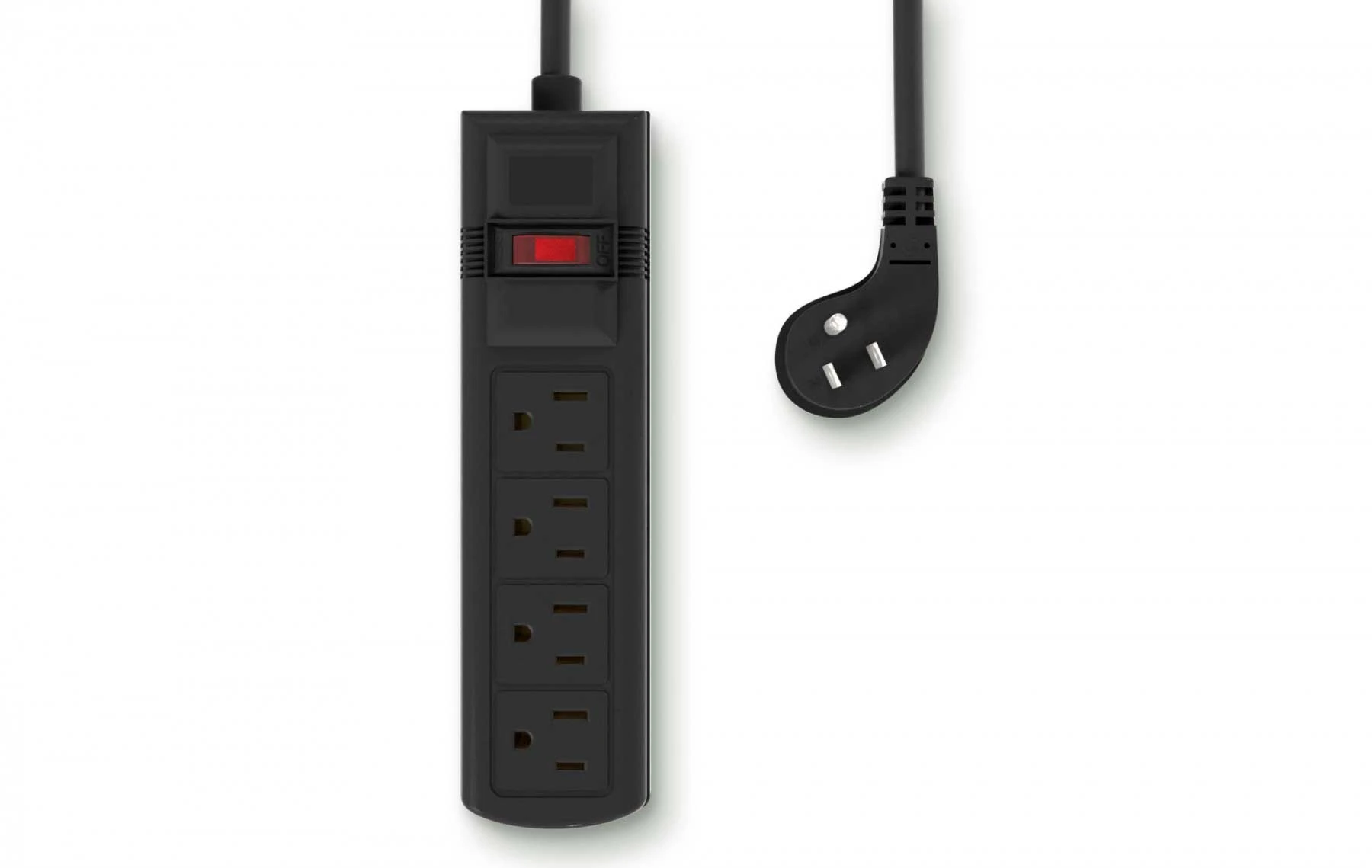Maximize safety and convenience with Portable design with 4 outlets and a thin 45˚ plug, ideal for travel. Illuminated Reset/Off Switch with a built-in 15A Circuit Breaker.