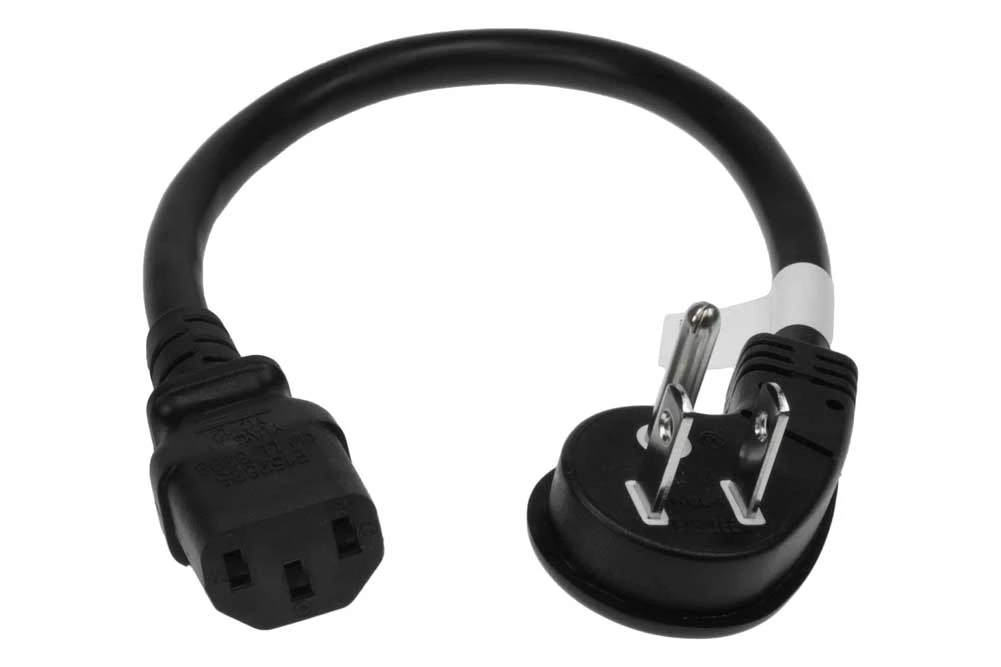 - Connectors: USA 3-pin plug 45 Degree Angle NEMA 5-15P to IEC C13